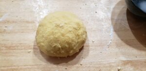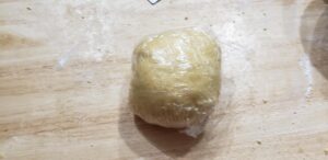 - Kneed it until it make a nice smooth ball. Needs to be elastic/stretchable, too much flour will make it dry, too much liquid make it sticky. Add more flour/water if this happens.